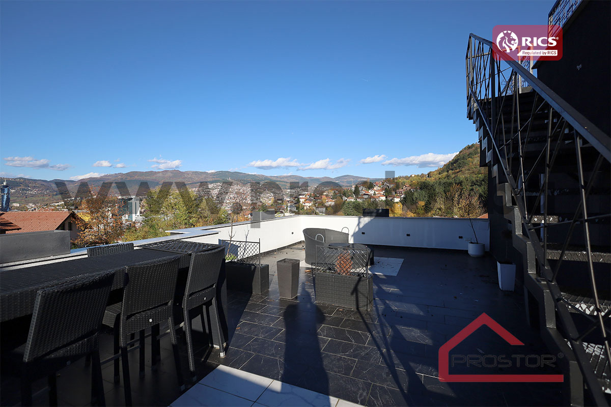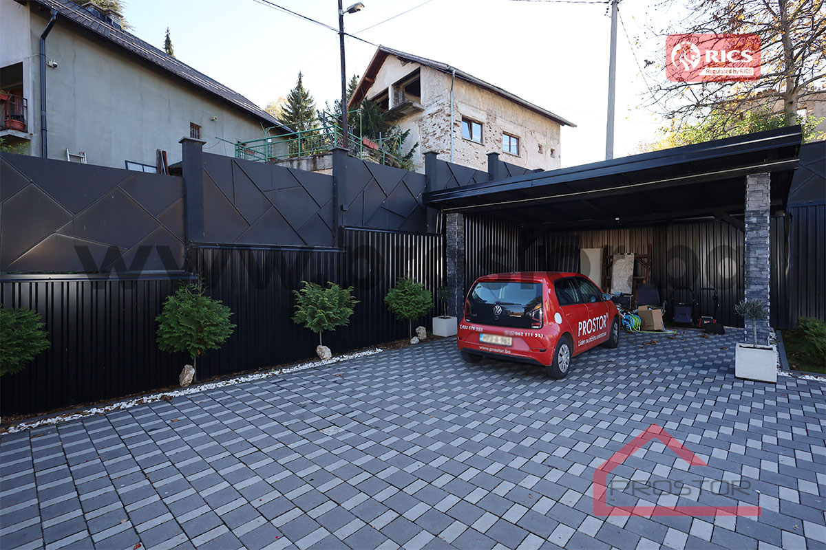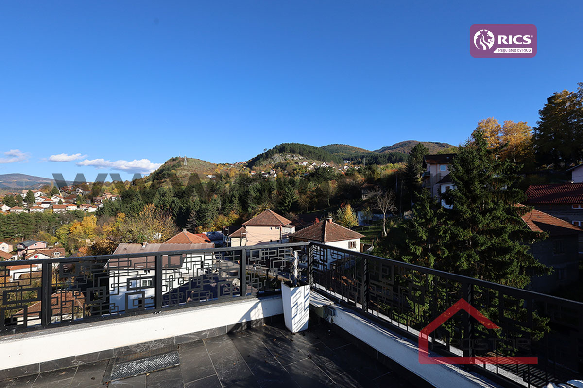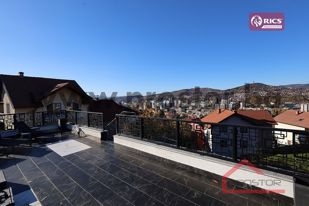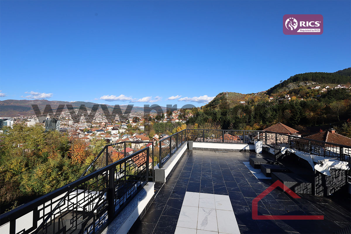 The property extends over three levels (ground floor, first and second floor) and sits on a spacious plot of approximately 520m⊃2;, featuring a beautifully landscaped yard, a traditional garden pavilion (šadrvan), and a large terrace with a stunning panoramic view of Sarajevo.