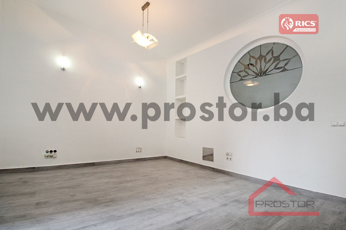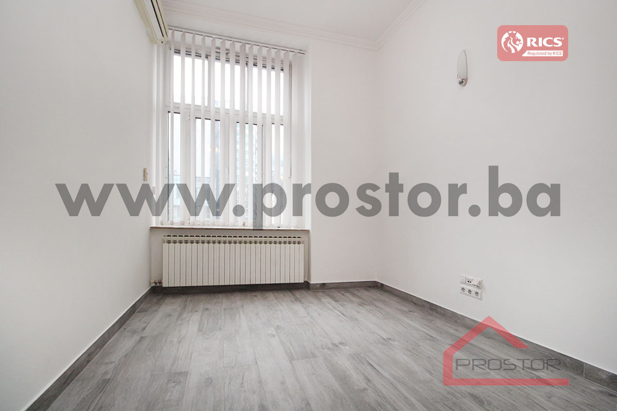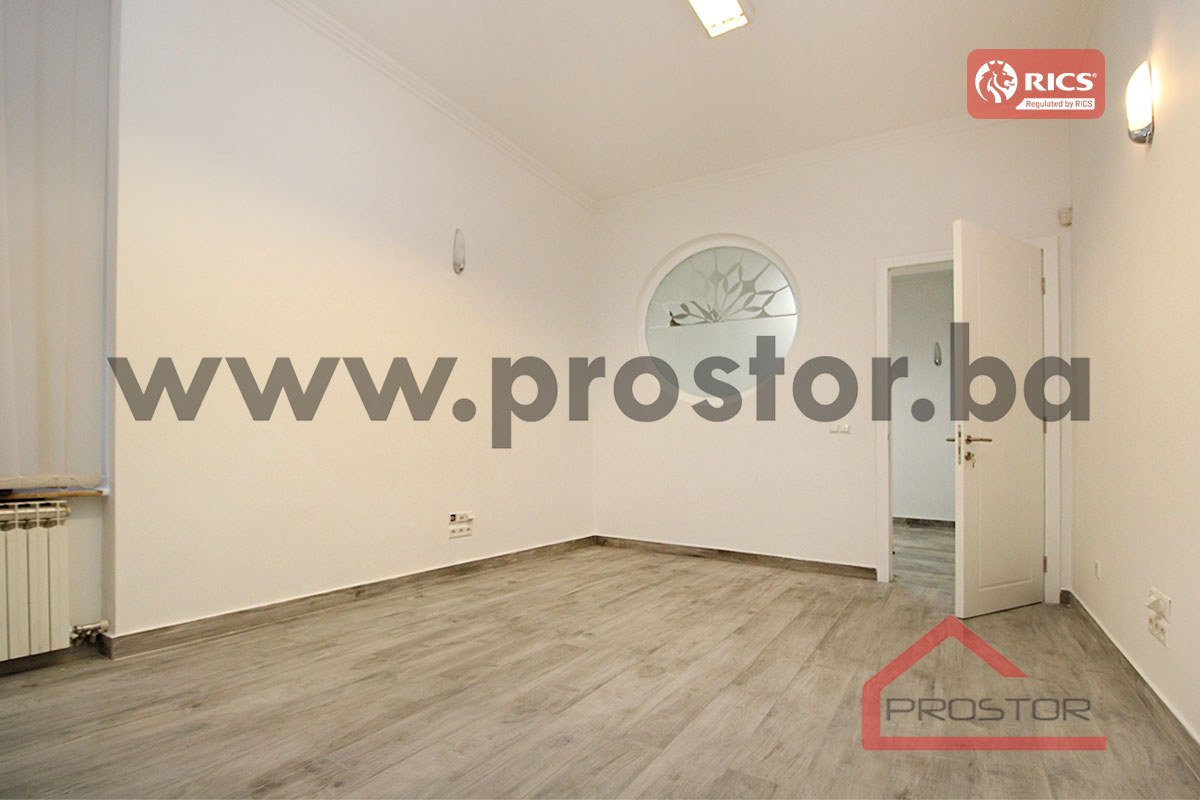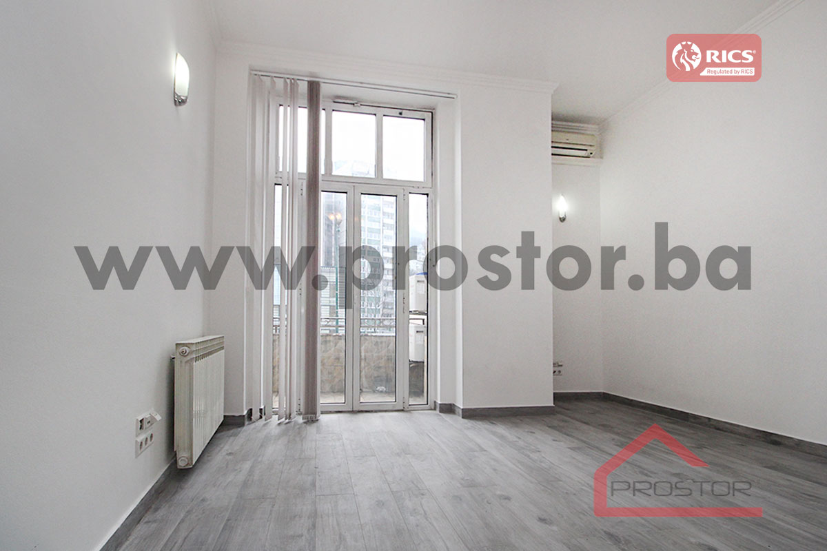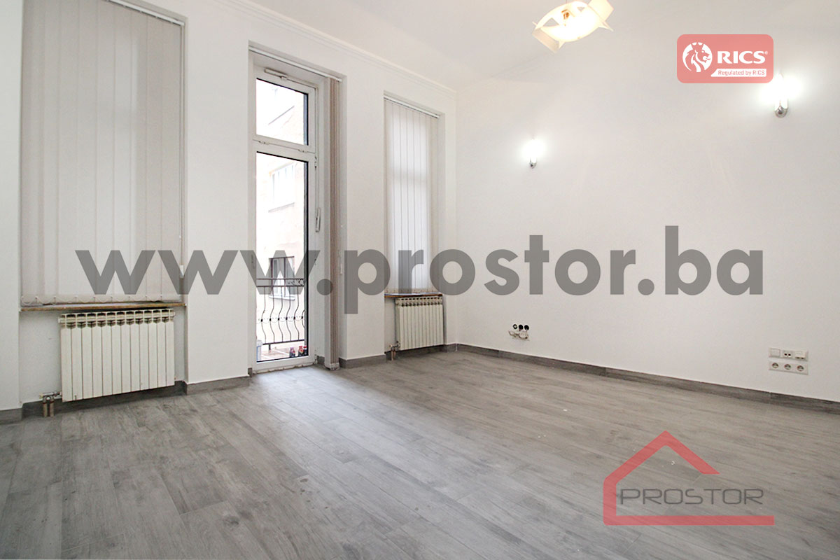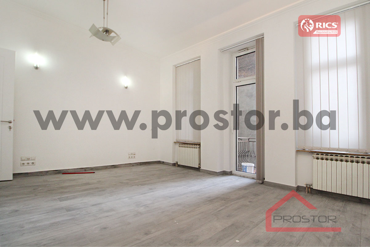 Refurbished unfurnished office space of 110sqm on the first floor of the building is offered for rent. It is located in the center, street Obala Kulina bana. Nearby is the building of the National Theatre, BBI shopping center, a large number of national and international institutions, the court, notary offices and future tenants at their disposal all the facilities needed for daily life (supermarket, public transportation, park, pharmacy, post office etc.). It is important to mention that the property features 1 private parking space.