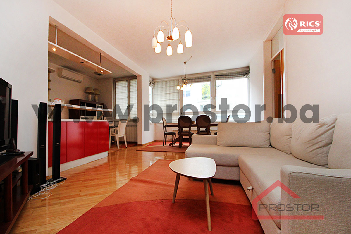 Modern furnished 3BDR apartment on the 1st floor of the new building in a very attractive location in Hamdije Kresevljakovica street of 134m2 is offered for rent. It is important to highlight the fact that the apartment has its own garage.