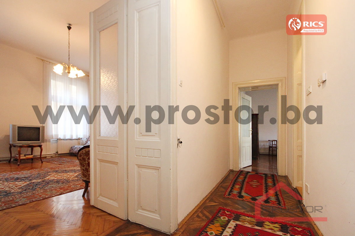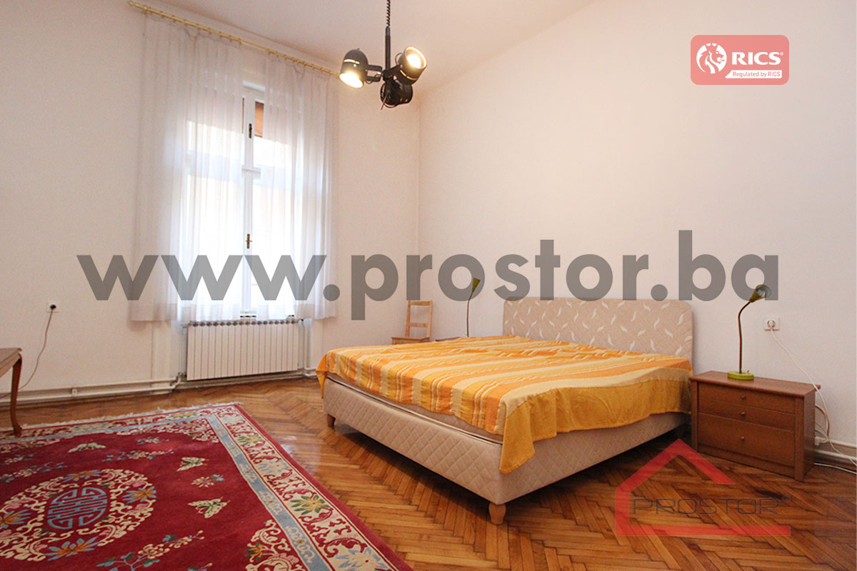 A spacious and bright apartment of 178m⊃2; is available for rent on the second floor of a building in Mehmed Paše Sokolovića Street, in the Mejtas area, near KSC and the Cathedral. The apartment is in an excellent location, close to all necessary amenities such as restaurants, cafes, supermarkets, schools, and public transport. Although it is furnished, it can also be rented unfurnished, and the owner agrees that it can be used as office space. Additionally, an identical apartment on the third floor is also available for rent.