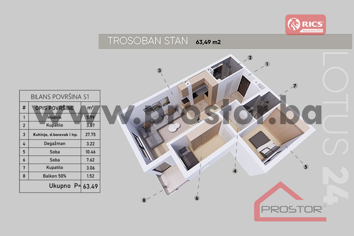15 Tlocrt Stana 63,49m2 (12/12)