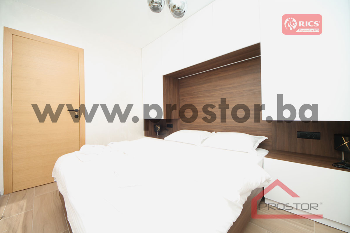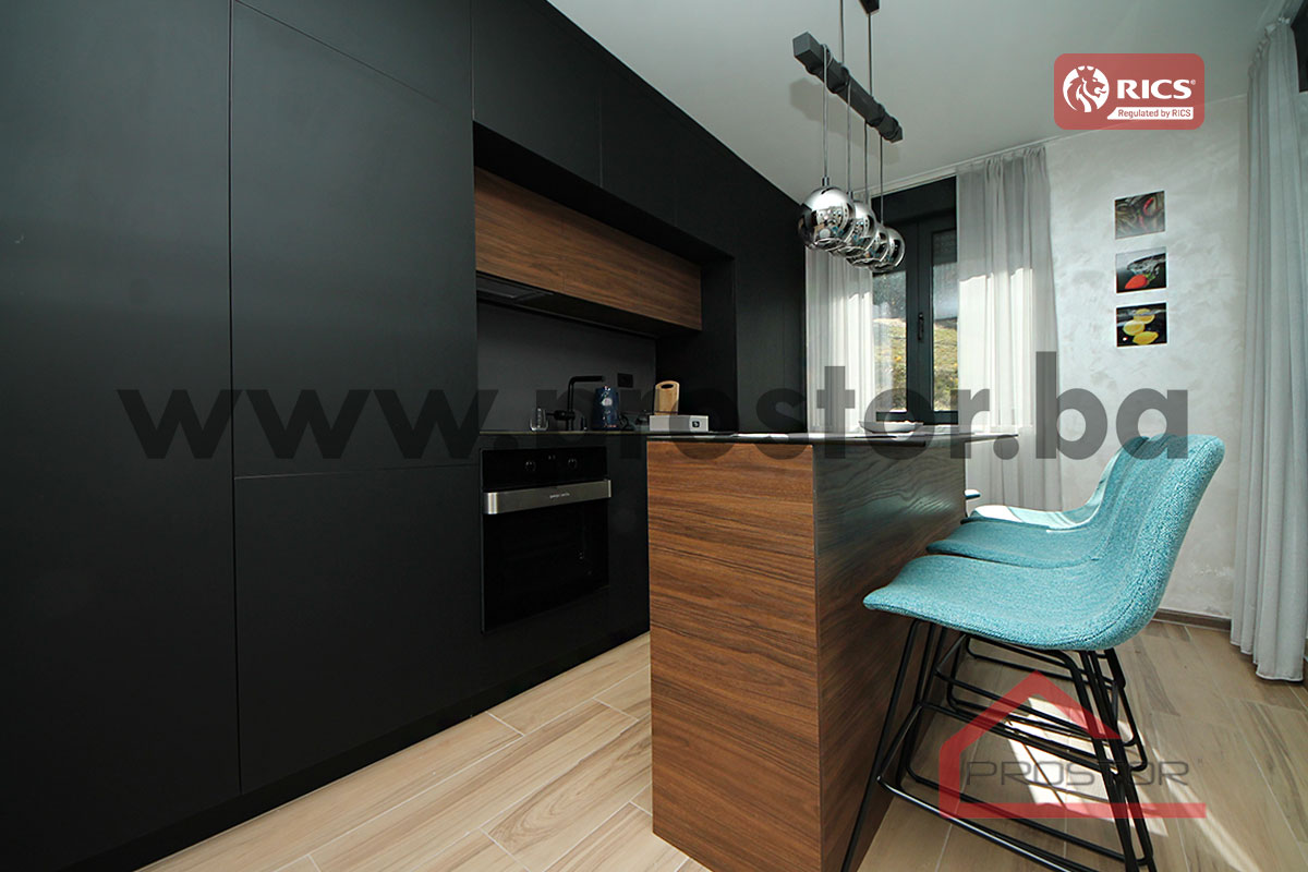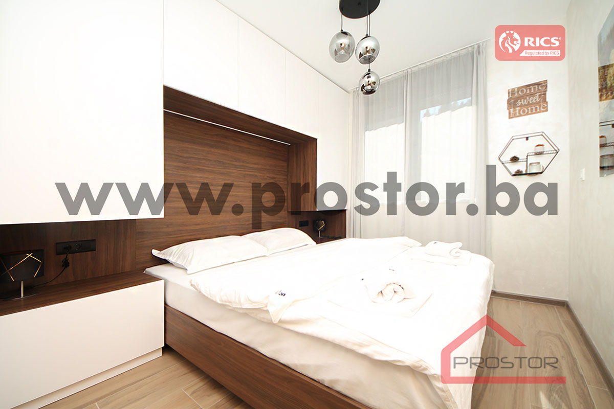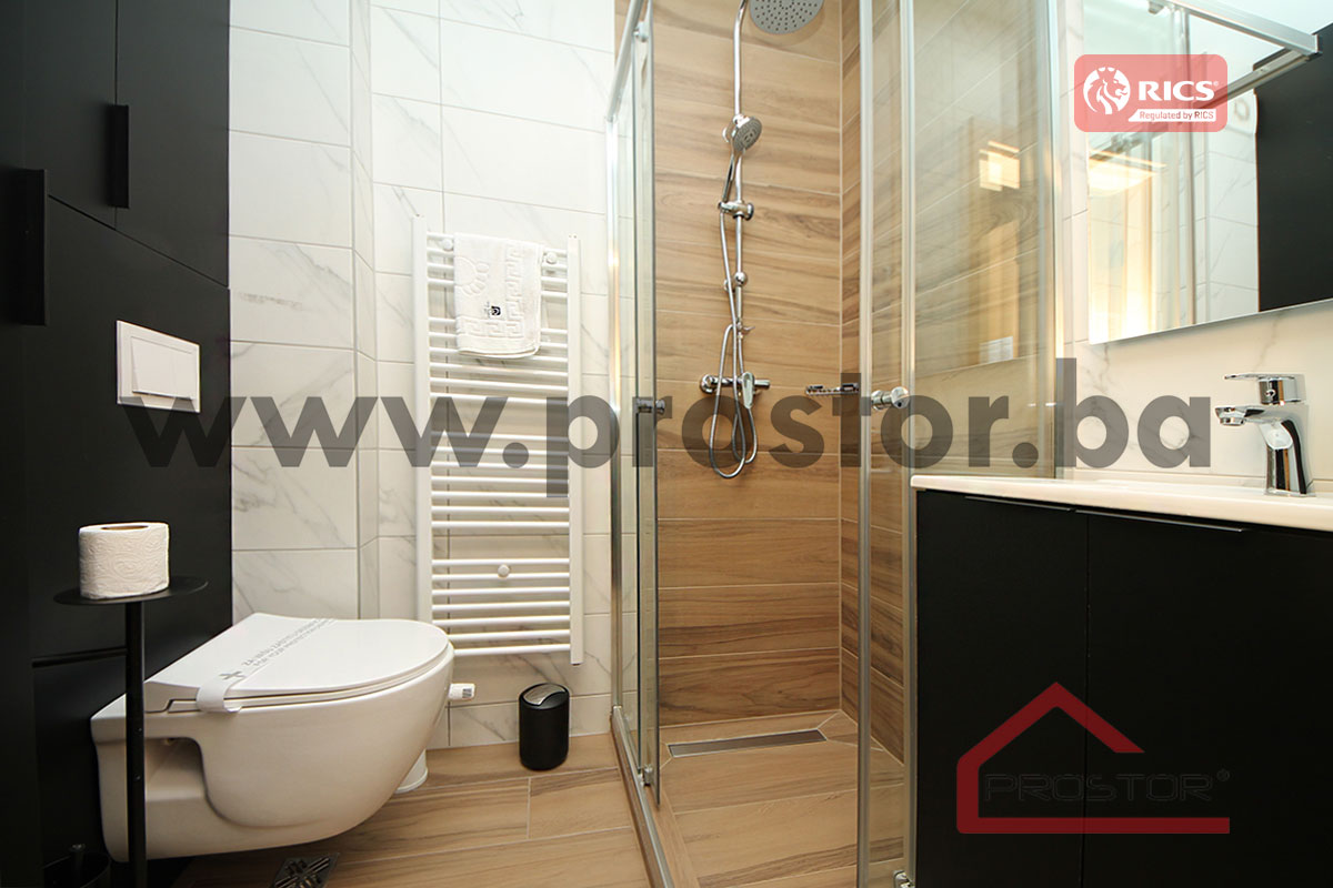 STANDARD Grijanje je obezbjeđeno putem el.energije,. Unutrašnja stolarija drvo. Vanjska stolarija aluminijska. Ulazna vrata su protuprovalna i vatrootporna,sa sigurnosnom bravom. Podovi u sobi, hodniku, dnevnom boravku, kuhinji i kupatilu  su urađeni od prvoklasnih keramičkih pločica. Kupatila su opremljena kvalitetnim sanitarnim opremom i  galanterijom, a obrađena keramikom I klase. Lift.