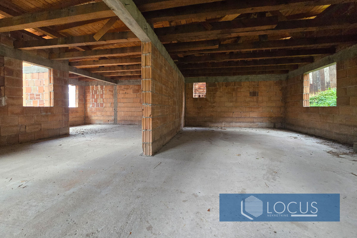 Veći objekat koji posjeduje dozvolu za građenje je bruto kvadratute cca. 155m2 i sastoji se od prostrane garaže sa kotlovnicom u prizemlju, a na spratu je predviđen stambeni prostor površine cca 89m⊃2; sa dnevnim boravkom, kuhinjom, dvije sobe, kupatilom i hodnikom.