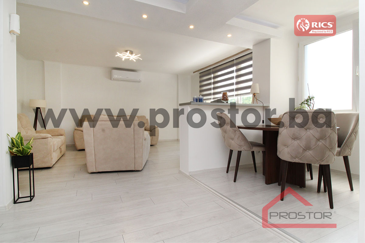 Prodaje se kompletno adaptiran i prostran trosoban stan uknjižene površine 77m2 smješten na trećem spratu stambene zgrade sa dva lifta u ulici Trg solidarnosti, naselje Alipašino polje. Zgrada u kojoj je smještena predmetna nekretnina izgrađena je krajem 1970-ih godina.