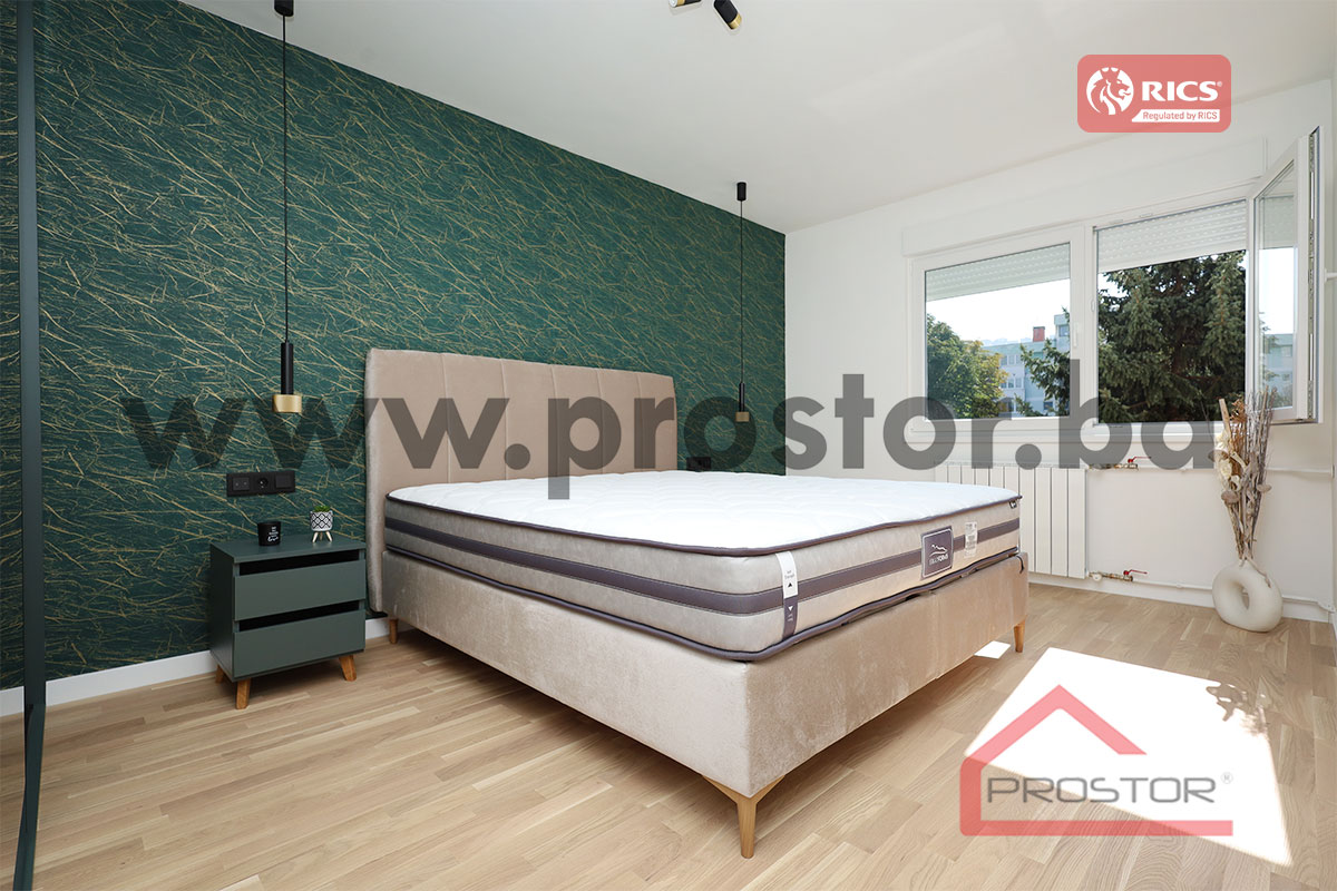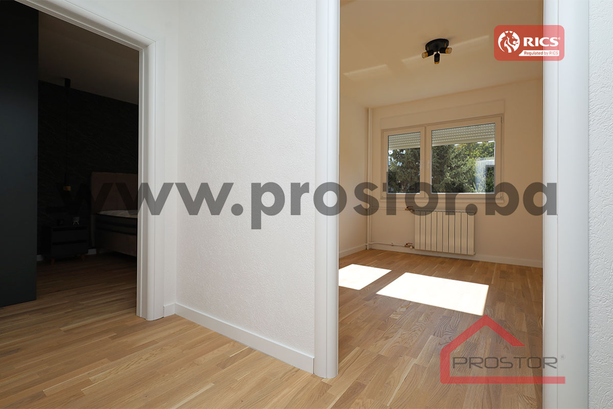 Prodaje se kompletno i kvalitetno adaptiran četverosoban stan uknjižene površine 72m2 (u kvadraturu ne ulaze površine balkona, lođe i ostave) na prvom spratu stambene zgrade u naselju Hrasno, ulica Džamijska. Funkcionalan raspored prostorija, dvostrana (jug-sjever) orijentacija sa otvorenim pogledom samo su neke od karakteristika koje doprinose ugodnom boravku u nekretnini.