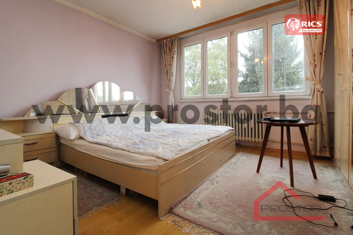 Prodaje se prostran trosoban stan sa dvije lođe uknjižene površine 84m2, smješten na 4. spratu stambene zgrade u naselju Pejton, ulica Josipa Slavenskog. Zgrada u kojoj je smještena predmetna nekretnina izgrađena je 1970-ih godina i spada u tip kvalitetnijih izgrađenih na ovom lokalitetu.