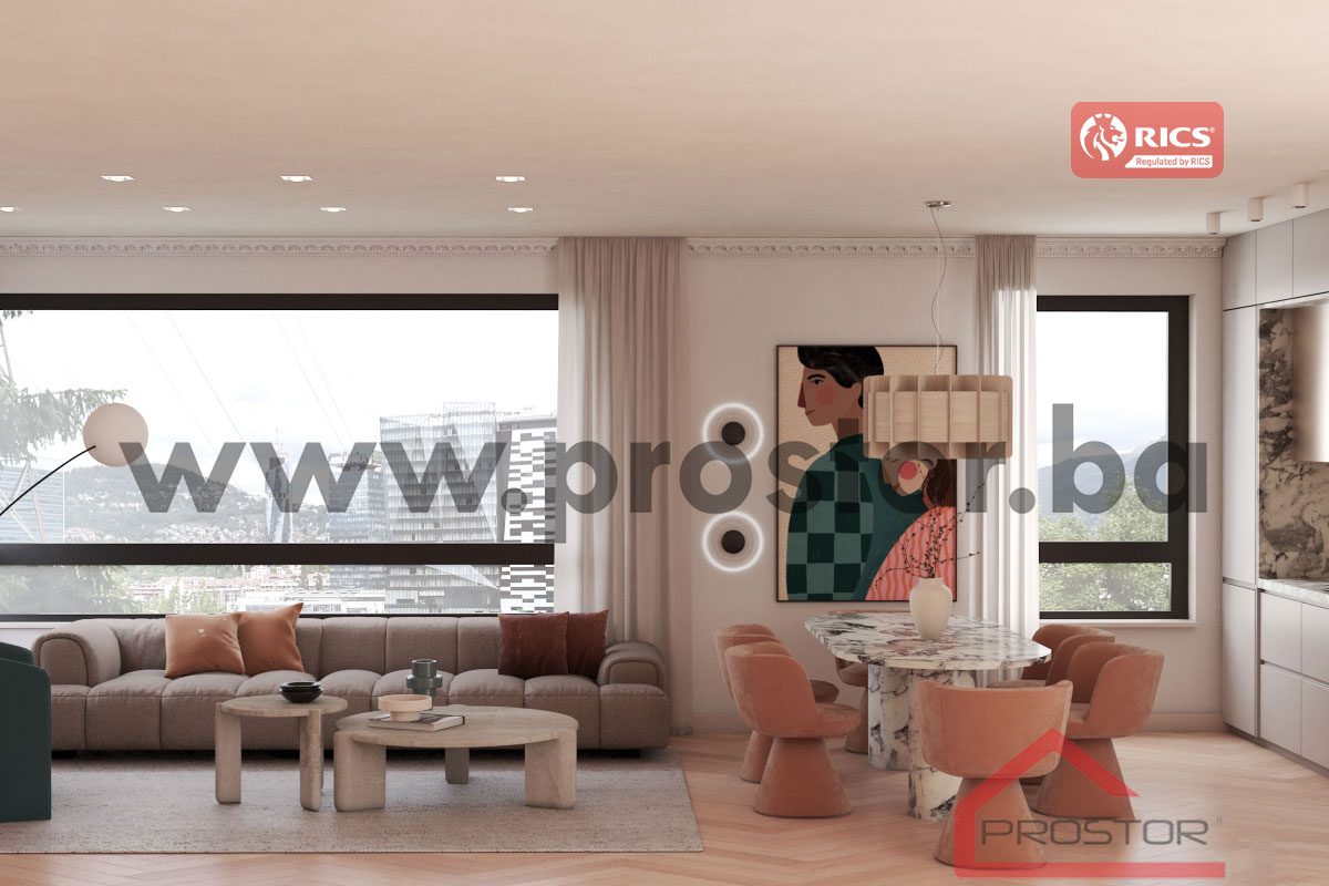 Stan je dvostrano orijentisan, s direktnim pogledom na centralni dio grada, što im pruža obilje prirodne svjetlosti i stvara poseban ugođaj. Posebna pažnja posvećena je funkcionalnosti i estetici, kako bi svaki kvadratni metar bio maksimalno iskorišten pa tako sadrži prostran dnevni boravak sa kuhinjom i trpezarijom, dvije spavaće sobe, kupatilo i predsoblje, uz optimalan raspored prostorija koji osigurava udobnost i privatnost.