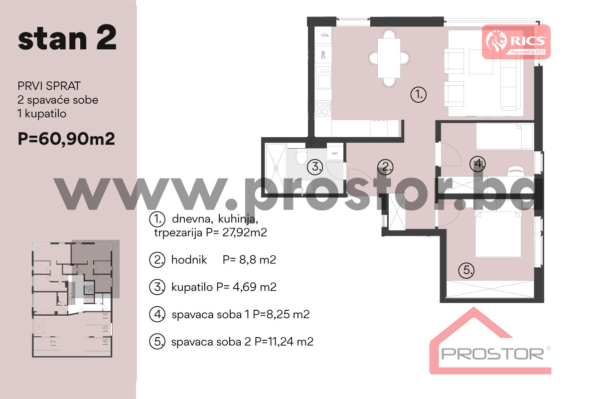 Predmetna nekretnina se nalazi na prvom spratu površine od 60,68m2, s cijenom od 450.660,00 KM u uključenim PDV-om!
