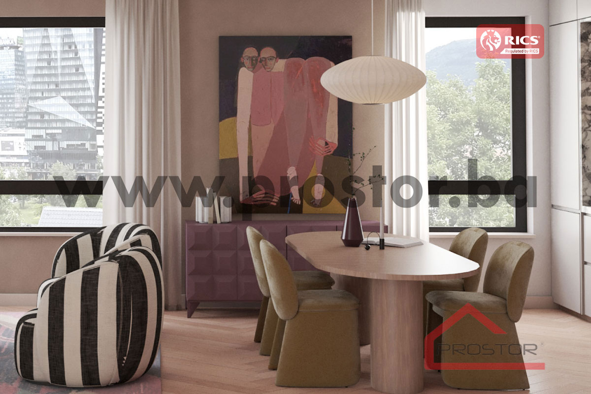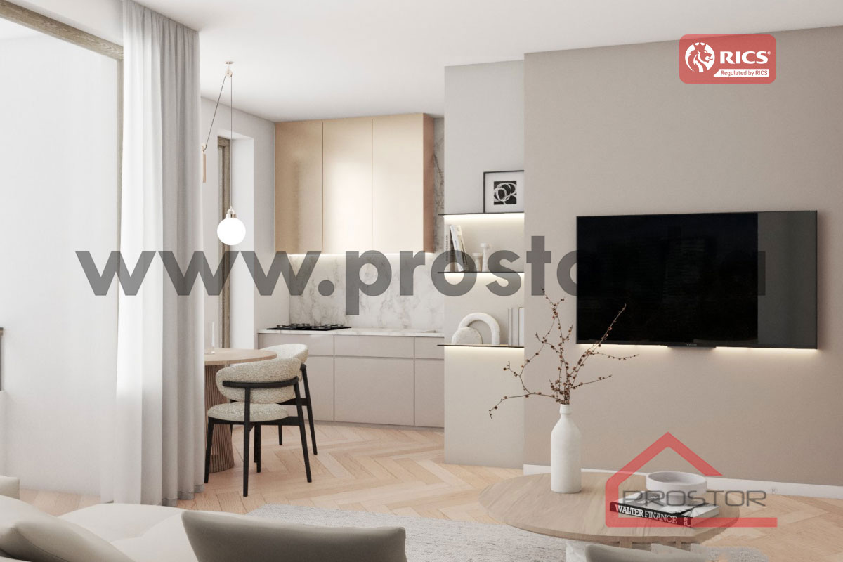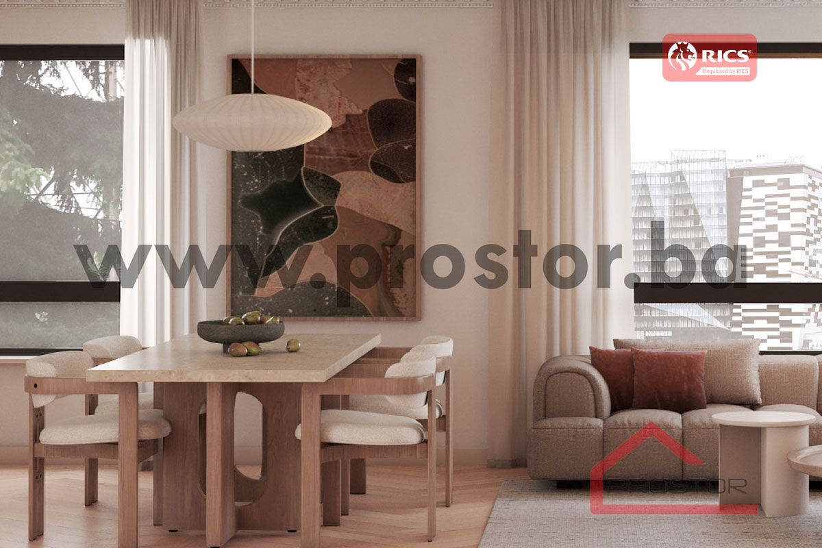 U uređenju stana naglasak je stavljen na moderan dizajn i maksimalnu udobnost. Raspored prostorija pažljivo je osmišljen i obuhvata prostran dnevni boravak s kuhinjom i trpezarijom, dvije elegantne spavaće sobe, moderno opremljeno kupatilo, predsoblje i lođu koja pruža dodatni komfor i ugođaj uz pogled na centar grada.